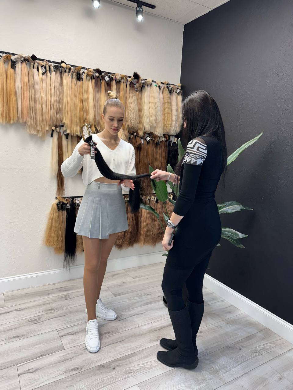 She uses only the finest natural Slavic hair, carefully selected and sourced from Belarus, Ukraine, Russia, and Poland. Inna provides an exclusive service of personalized hair selection and creation for clients. She personally chooses the hair for each client, then professionally colors and lightens it, ensuring that the extensions perfectly match the client’s hair structure and color. Each K-tip is created by hand. This meticulous approach guarantees flawless results, making it impossible to distinguish the extensions from natural hair. Also, Inna provides services in the CombLine and Tape-in techniques.